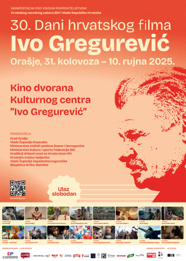 Od subote, 31. kolovoza do srijede, 10. rujna 2025. Orašje će ponovno postati središte filmske umjetnosti i susreta publike s vrhunskim ostvarenjima domaće i regionalne kinematografije. Jubilarno, 30. izdanje Dana hrvatskog filma Ivo Gregurević održat će se u Kino dvorani Kulturnog centra ‘’Ivo Gregurević’’ u Orašju, a otvorit će ga ratna drama JOSEF redatelja Stanislava Tomića, a u narednim danima festivalska publika moći će uživati u raznovrsnom programu koji donosi recentne domaće igrane naslove – DRAŽEN redatelja Danila Šerbedžije, BUMBAROVO LJETO redatelja Danijela…